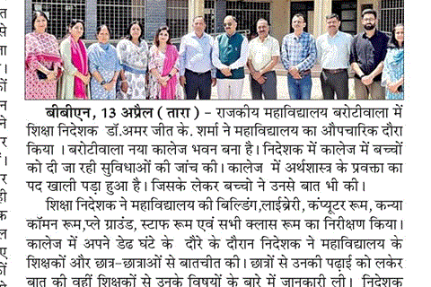 Director of Higher Education Visits GC Barotiwala, Reviews Quality, Facilities, and Student Welfare - 2026-2027
